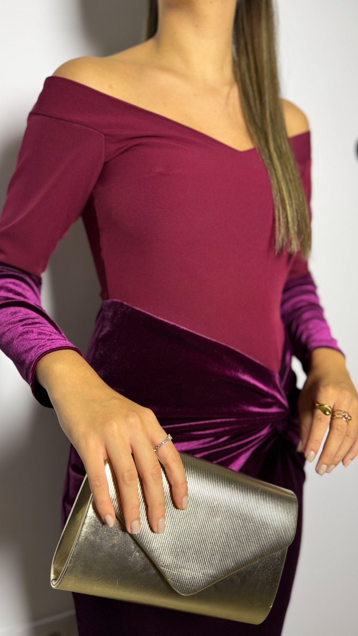 -Vestido midi con abertura lateral.-Combinado con terciopelo.